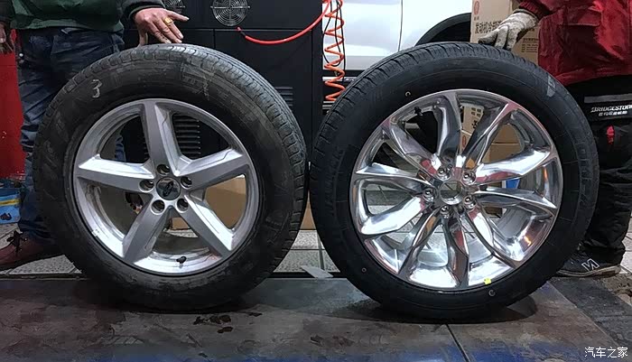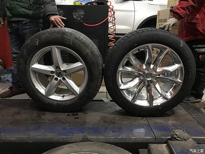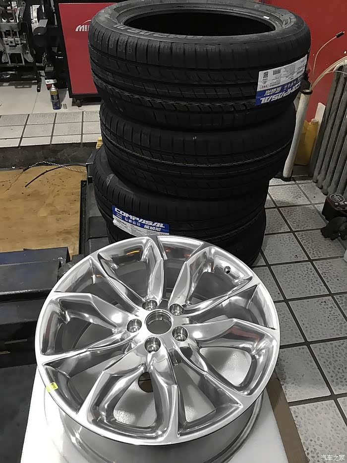 型号是20寸8.5J,配备的轮胎是255-50-R20,价格1200一个,做动平衡的时候特意看了一下,轮毂偏差很小,最多的一个配了大概30克的铅块,一般都在十几克和20克之间,这样的偏差算是比较小的