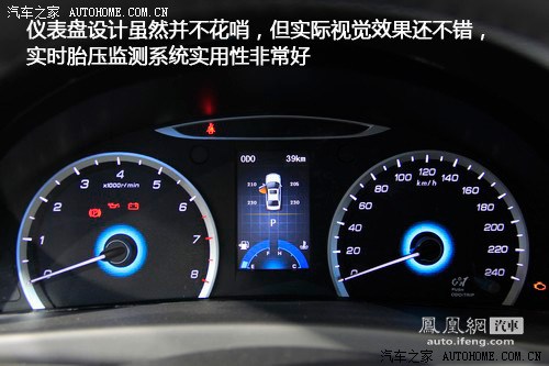 从直观的视觉感受上看,睿骋的仪表稍显朴素,不过淡蓝色的背景光以及中间较为细腻的多功能液晶显示屏在实际读取中的感觉还是不错的,尤其是整合在其中的实时胎压监测功能非常实用,不仅能让驾驶者在第一时间发现缺气轮胎,更可在日常使用中提醒驾驶者及时充气,避免较低胎压带来的燃油浪费。