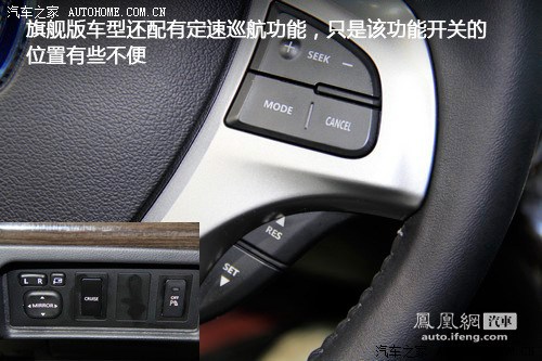 与座椅同样让人乐于接受的还有定速巡航功能,该功能的开关被设计在方向盘左后位置的仪表台上,刚开始使用起来会有些别扭,不过适应之后就问题不大了,尤其是整合在方向盘上的速度调节按钮使用起来还较为方便。