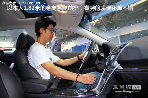 以本人1.82米的身高落座于睿骋的前排后,很快就可调整到较为舒适的坐姿,可见其人机工程学设计较为成熟。移步后排,较为宽敞的腿部空间可以让后排乘客舒适地落座,只是头部空间略显局促,本人的头发已经可以触及到车顶了。不过相信对于大多数人来讲,睿骋的后排空间都是相当宽适的。