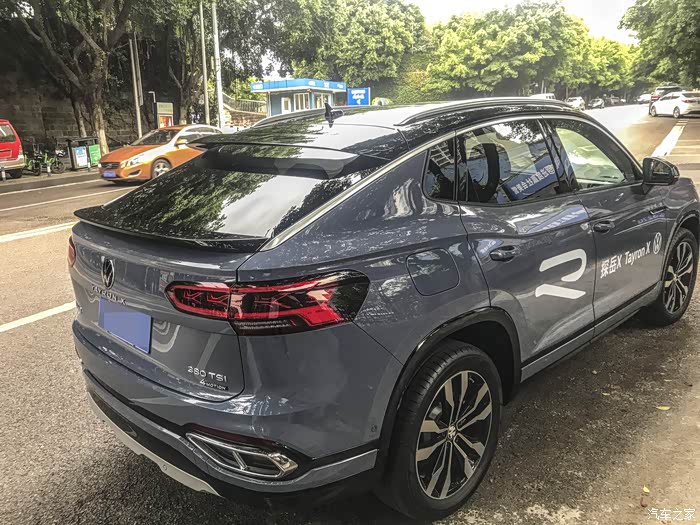 首先探岳X的外观我是挺喜欢的类型,和普通的探岳相比,探岳X看起来更加的运动,特别是溜背式的造型,看起来饱满立体,时尚动感,我还喜欢这样的轿跑SUV,显得更加的年轻,而且探岳X还全系标配了R-LINE套件,这一点还是挺厚道的,不仅看起来好看,还比较精致。
