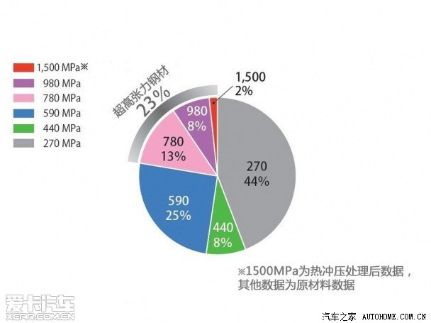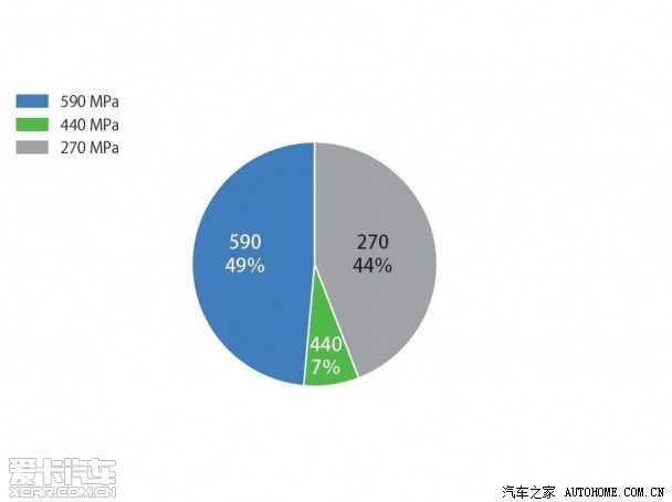 2.通过大量使用高强度钢而减轻了57磅车架重量,其中包括27%的780、980、1500MPa的高强度钢。