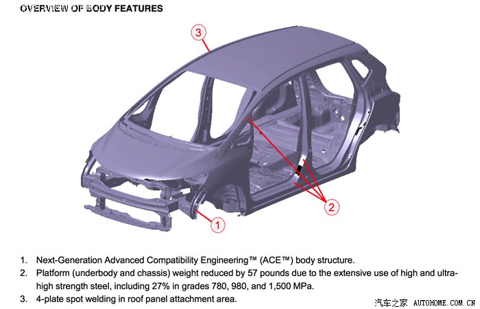 这里可以看到本田大量使用了590MPa以上的高强度钢来增加车架刚性从而减轻重量。