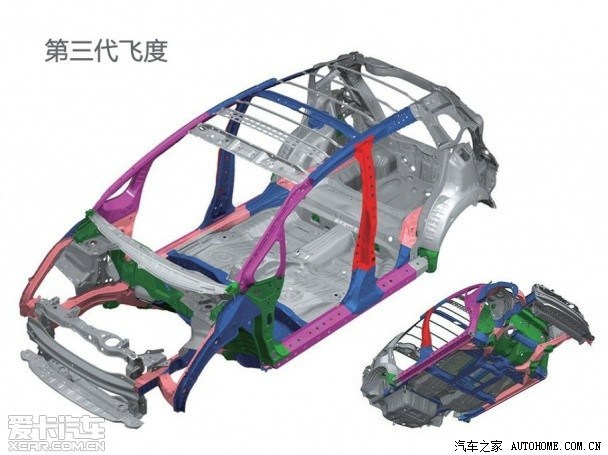 有人说二代飞度碰撞结果不尽人意,IIHS的小面积碰撞拿了个poor,那好,我们来看看二代的车架图: