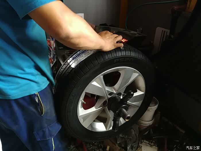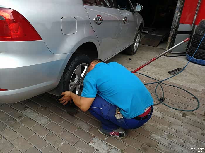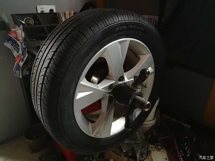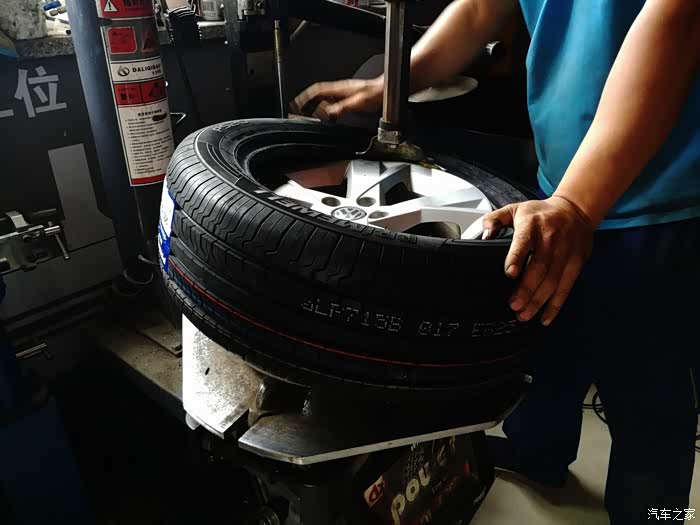 轮胎到后联系附件汽修店准备安装,虽然只是普通的汽修店,但是这么近也是太方便了,距我这儿不足三公里的路程。安装的过程千篇一律,都是卸老胎,扒胎,换新胎,充气和动平衡的相关流程,在此不多述。