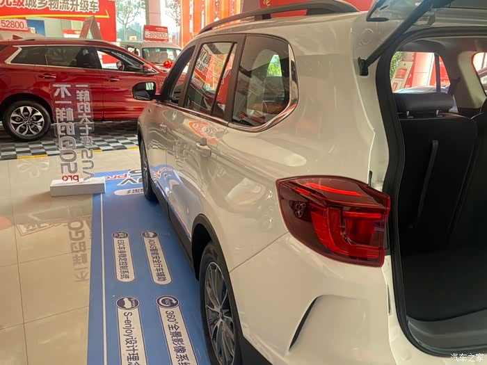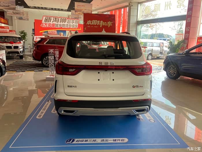 今天我是来4S店里来拿礼品的,上次提车后礼品忘记拿了,我正好看到店里停进来了一台斯威G05pro,外观看上去真的大呀!感觉前脸比我的车子漂亮多了,好喜欢那个黑黑的大灯很帅很运动。侧面看上去也很大气那个轮胎钢圈还是蛮漂亮的灰色的,这个车子也是7个座位的里面好大的。配置我看了下是全景天窗的好大一块玻璃