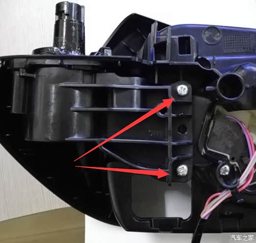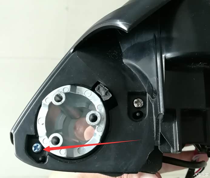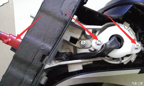 依次装回所有的部件。到这里箭头所指的位置要把原车的螺丝换成4*30的长螺丝。