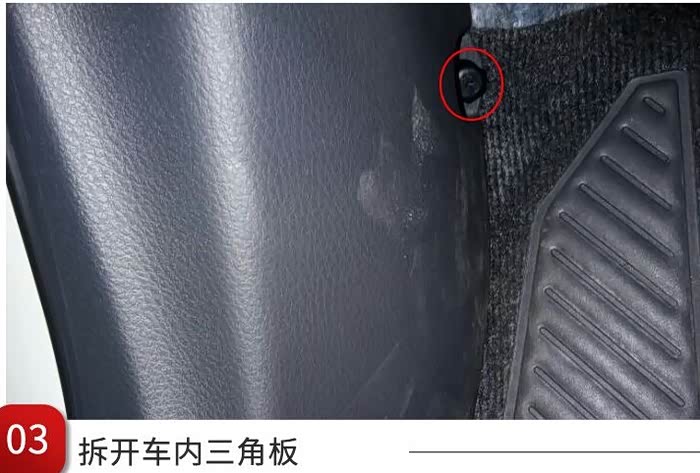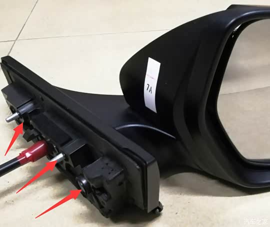 在门板对应位置取下三颗螺钉,拆下后视镜