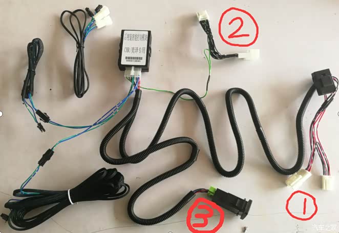 这是配的主机和线束和开关的接法。①插头在方向 盘下面转换。