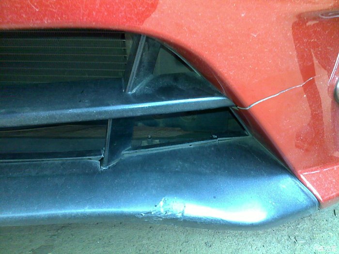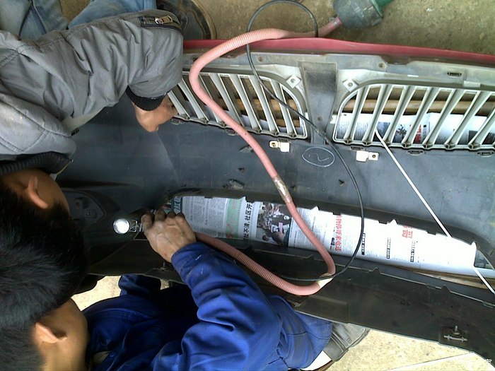 更换前保险杠杠下进气格栅、修补前保险杠裂缝