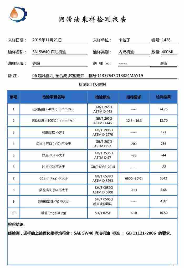 声明:本次检测只对样品负责,样品来自论坛车友,4升装未开封新油。