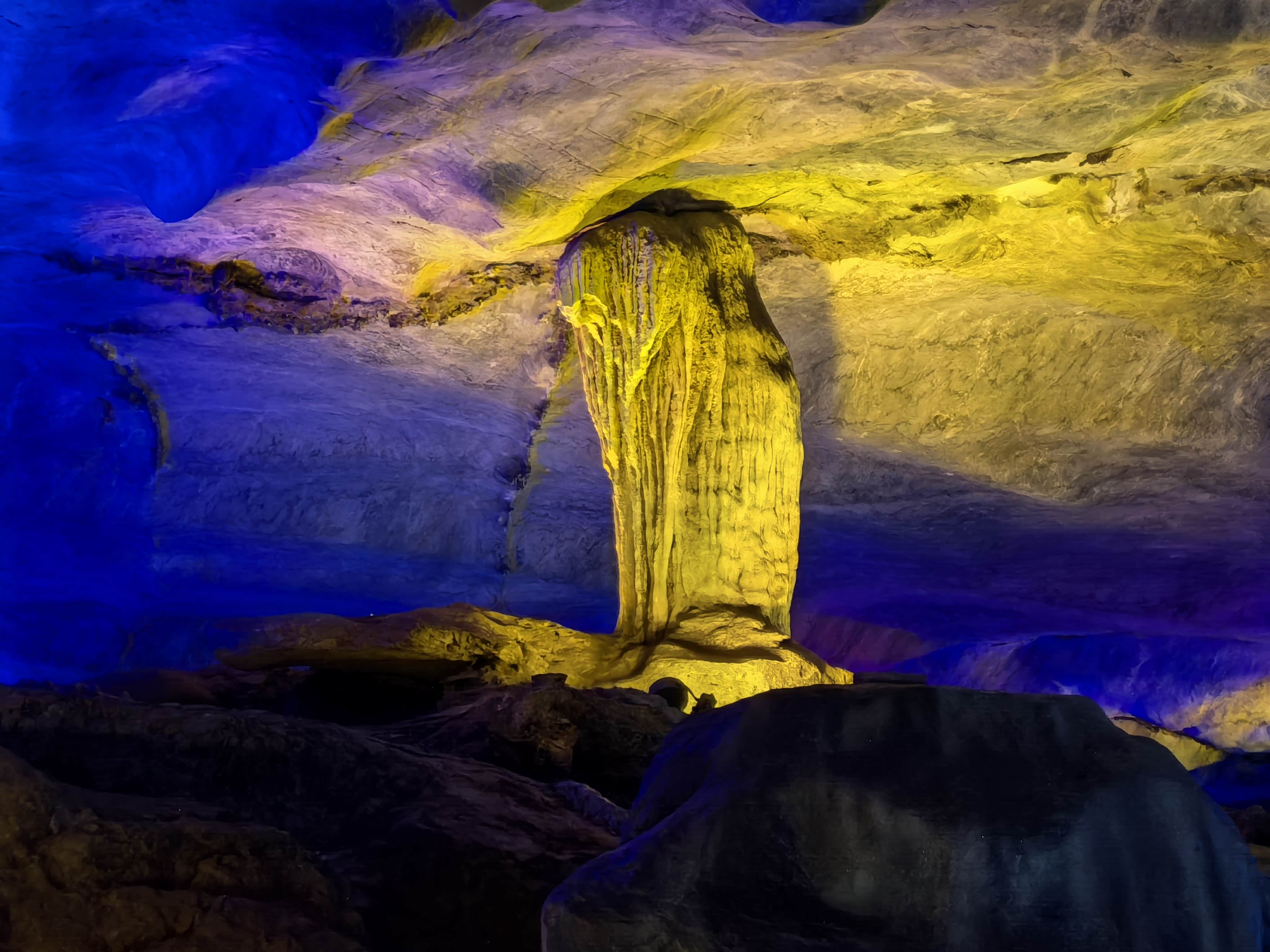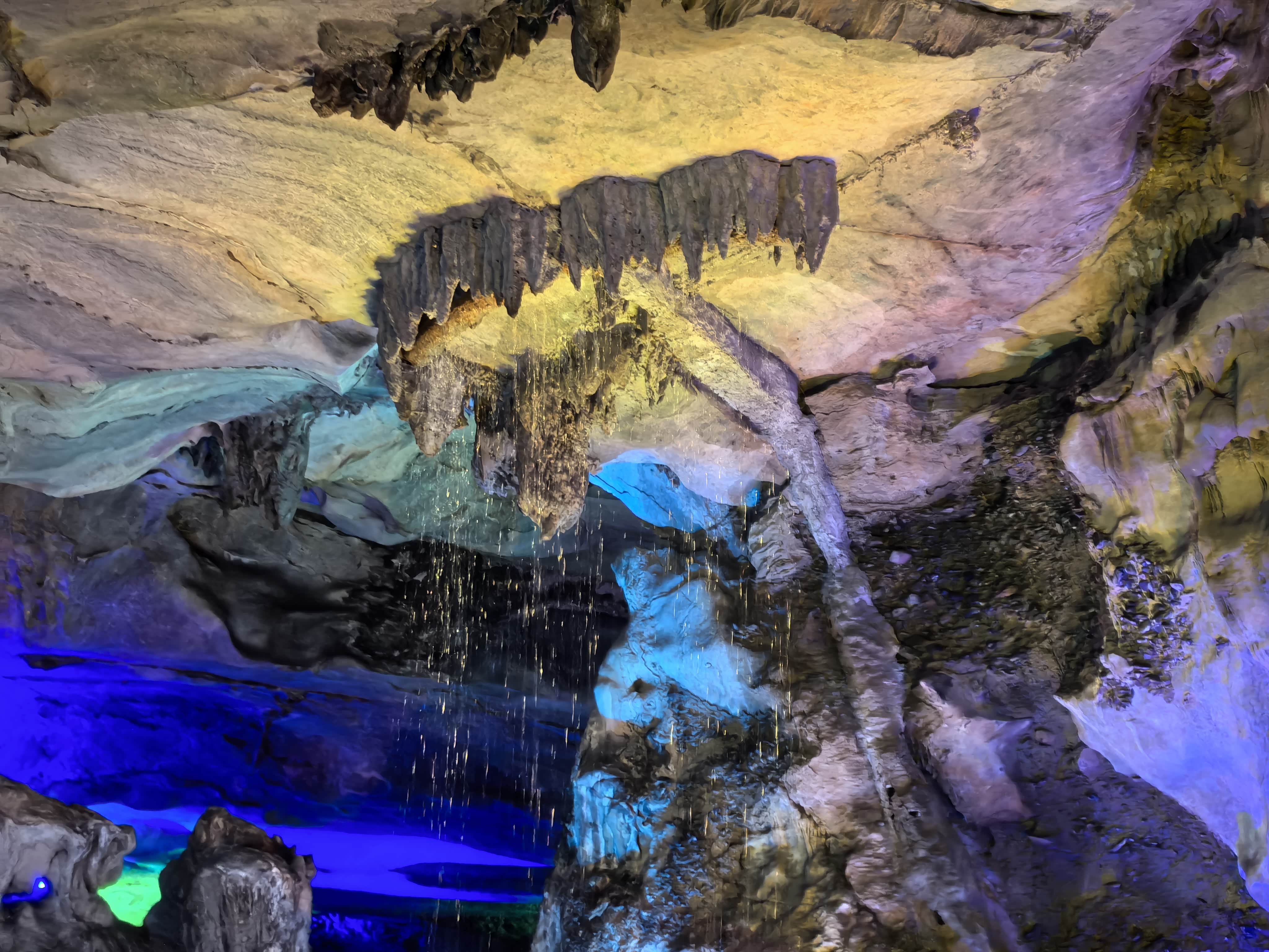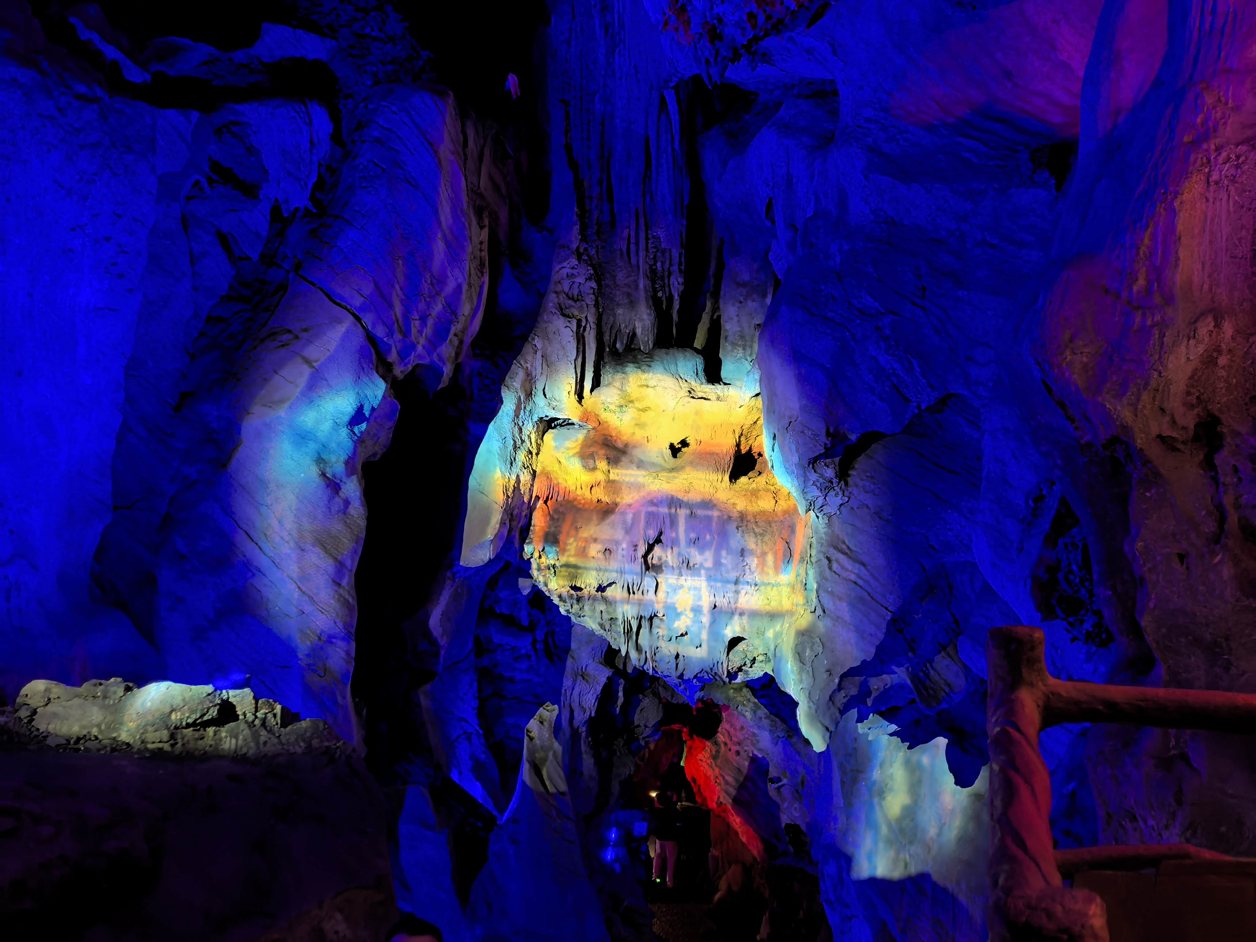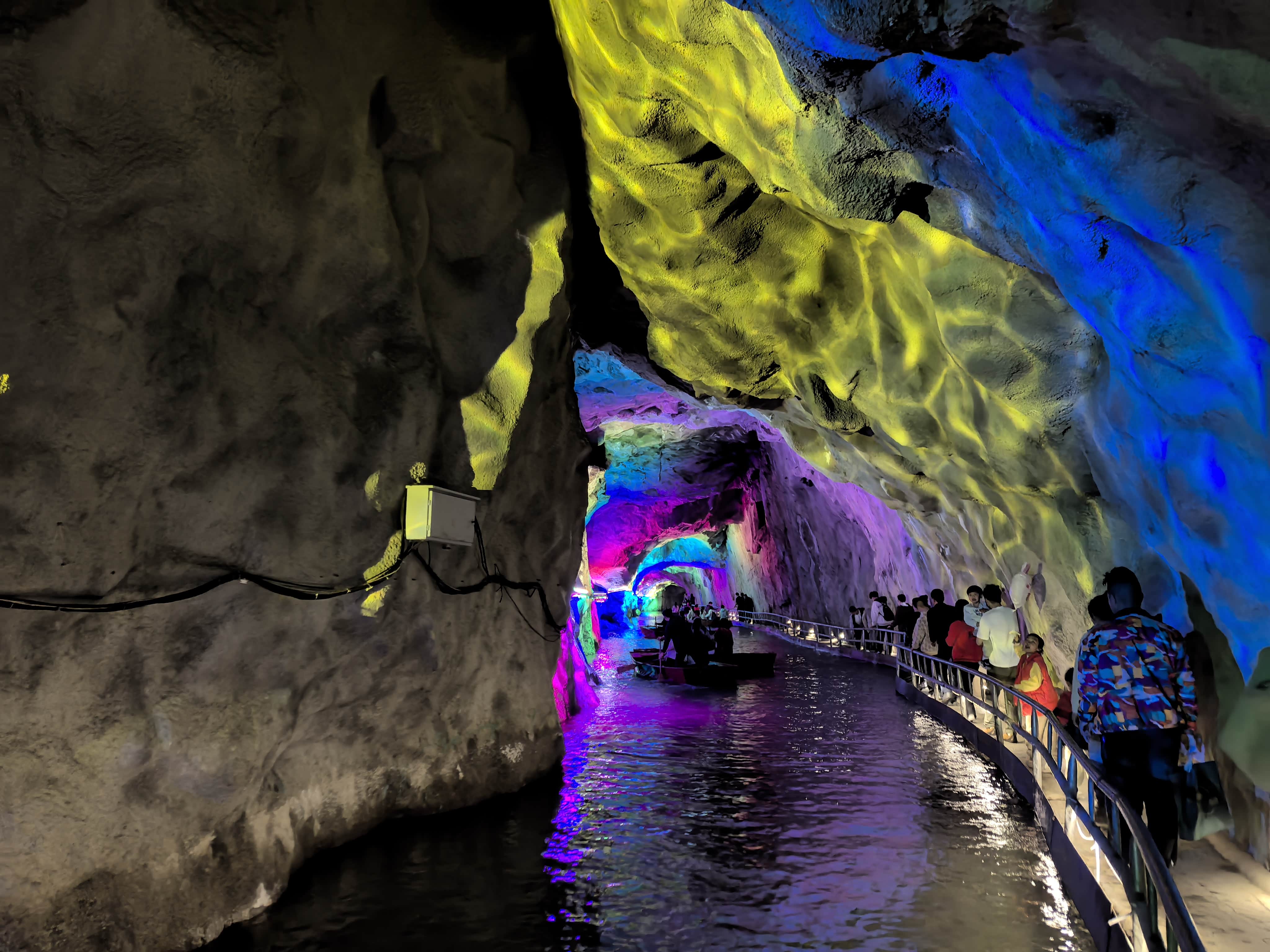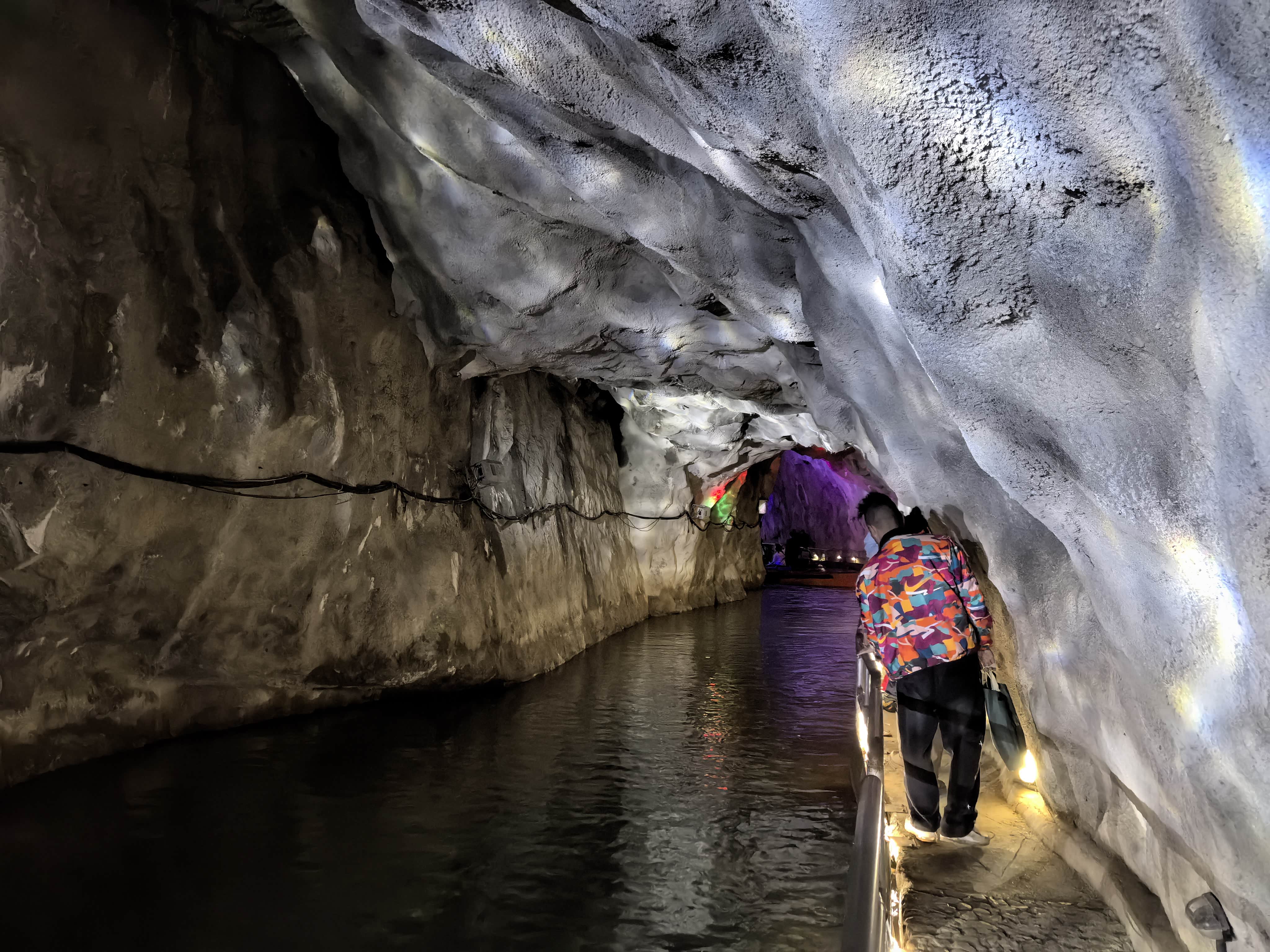 溶洞出口则是有两种方式出洞:水路和陆路,第一次玩是划船出洞,那时候出口洞还没有这么多彩灯只有一些照明灯,但相比于以前缺少了些惊奇感和探索感;陆路则是一条贴着溶洞小道,体型较大的需要贴壁横着走。整个行程走下来差不多1小时左右,时隔十几年在走一次整体体验还是比较不错。