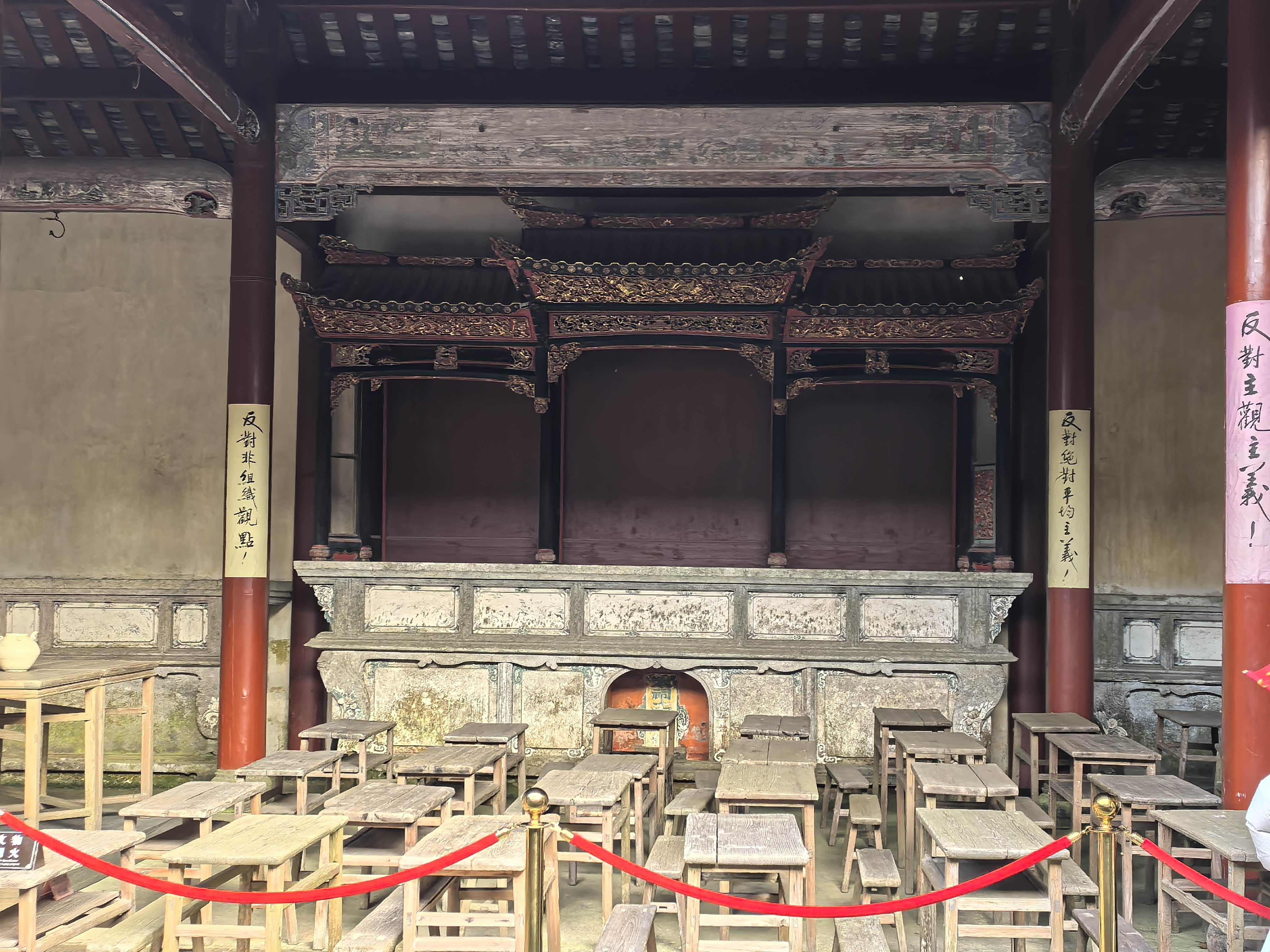 开会旧址位于山脚的一座廖氏祠堂,始建于1848年,会场就设在祠堂的厅堂里,桌椅和讲台都是借用以前学校的,条件十分简陋;辛亥革命后,改名为和声小学。
