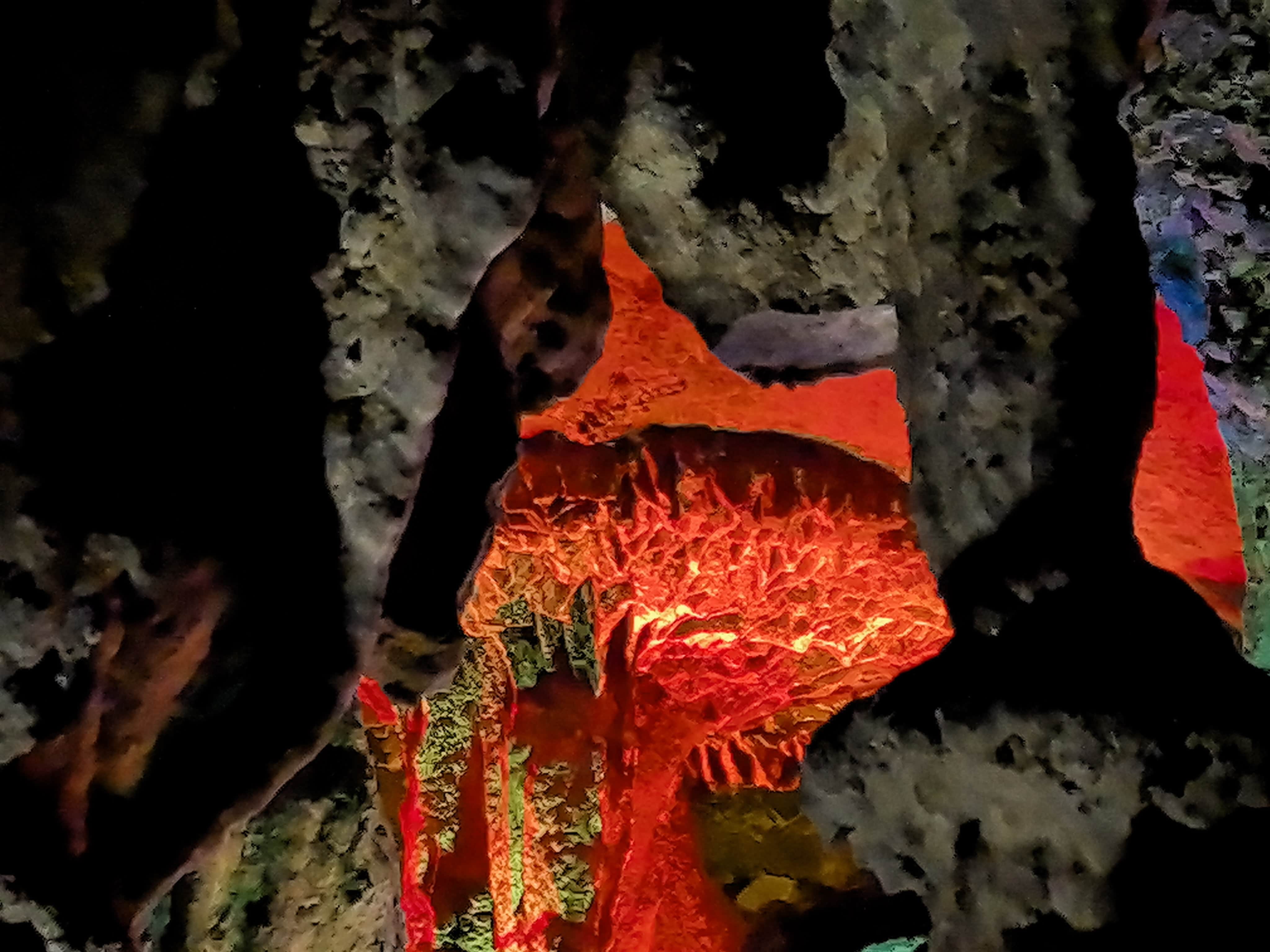 整个溶洞样貌和小学来的时候没有什么变化,洞内的灯光倒是增加了许多,早期有些比较险峻的道路进行了封闭,应当是防止发生意外;洞内有着许多奇观异石:孽龙吐水、擎天柱、白龙马、龙伞等等都有着独特形象。
