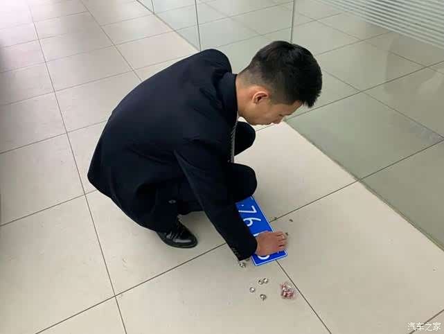 工作人员正在弄车牌,为我的黑武士挂牌照。