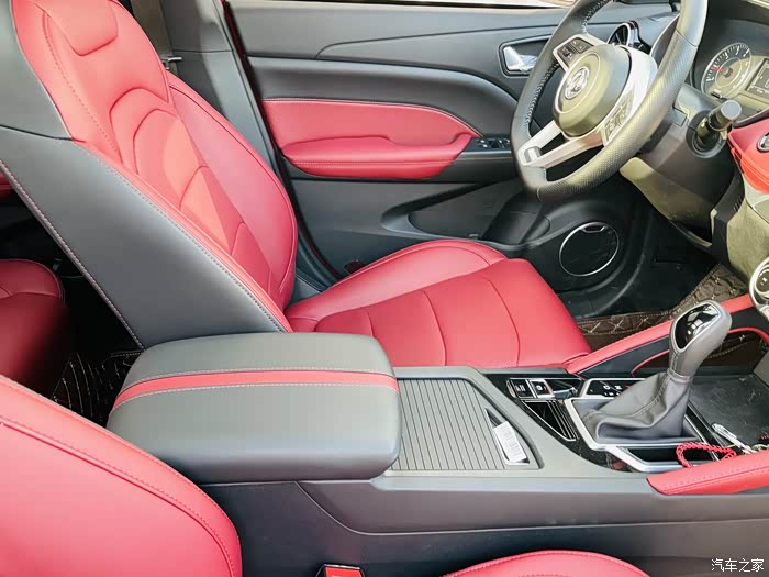 整个内饰的颜色是红色和黑色的混合,主色调是红色,看着很养眼的暖气感