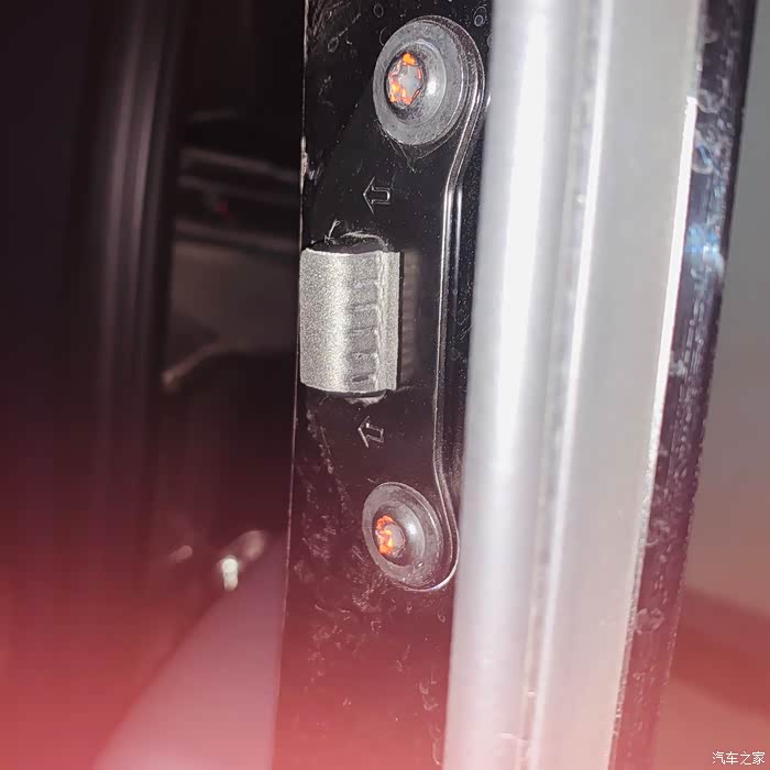 因为对不上所以门就算关起来也是畸形的,所以会不严合导致哒哒哒异响,调节完路试了一下目前没发现哒哒哒了。由于之前错位,限位器都被磨损了。