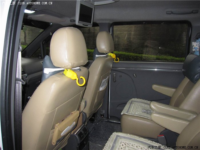 答案就是:6个大人,5个小孩,(其中2个8岁,2个6岁,一个1岁,)还有4个大皮箱放在2排中间。然后以90公里开到番禺,全程开空调,避震不错,由于刚刚做了四门隔音,在车里面感觉很安静,很舒服,直路很好跑,刹车灵敏,上坡加速较慢。