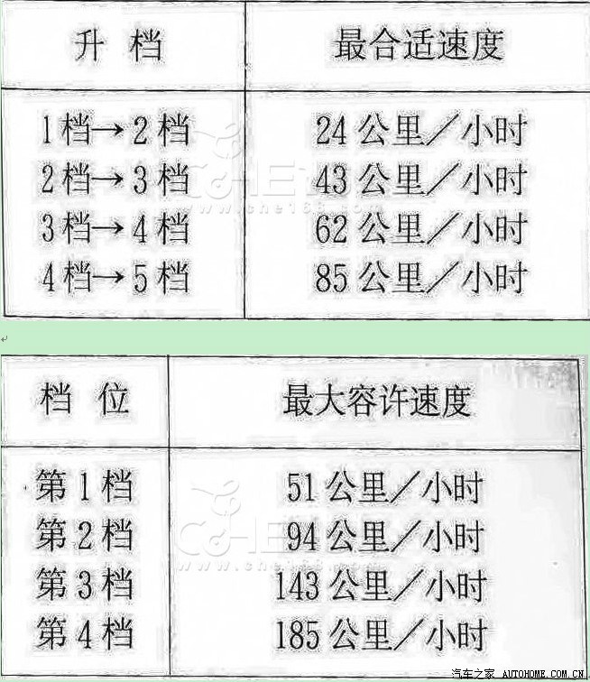 发一个锋范换挡速度对照表(来自车辆说明书)