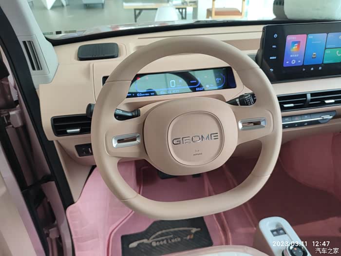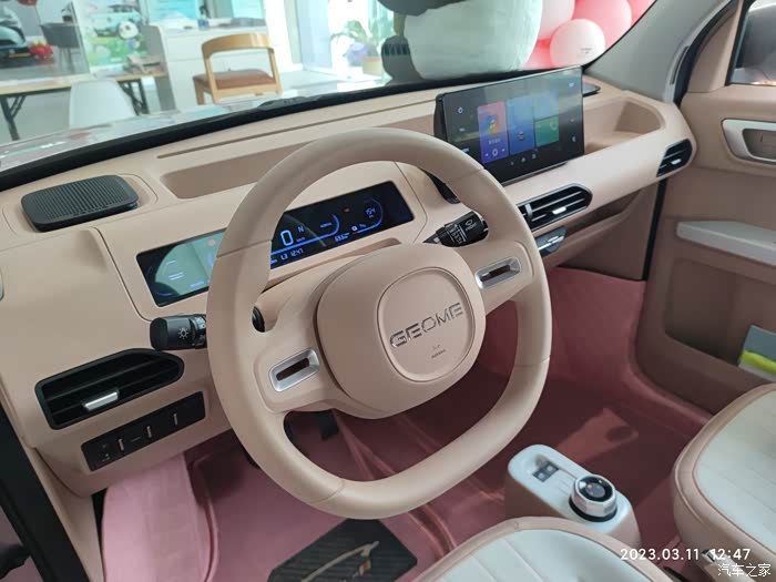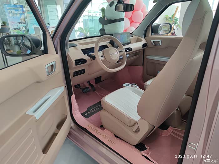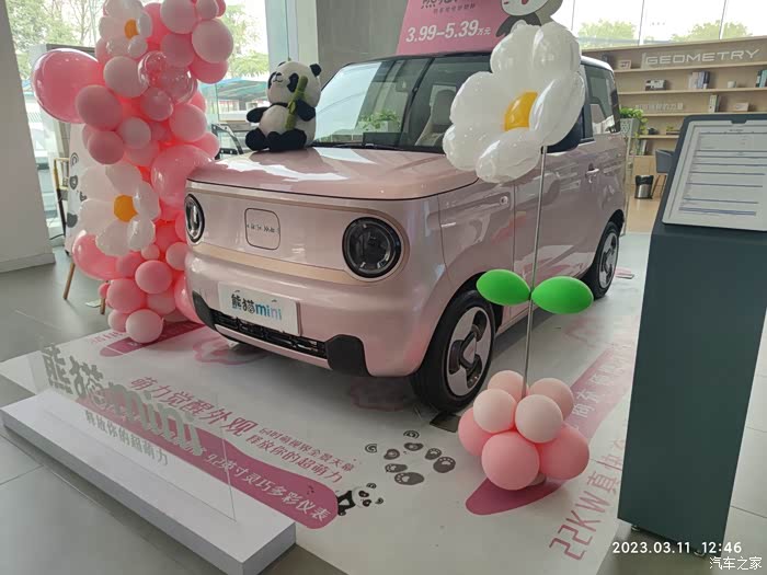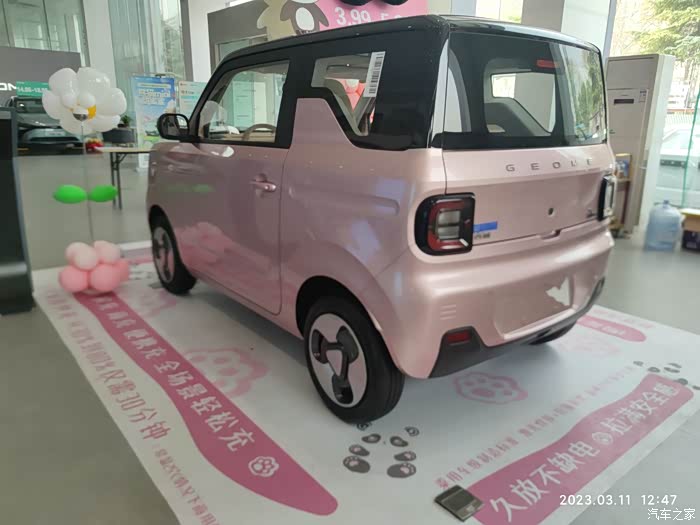 一转眼2023年的春天脚步已经来了,阳光明媚的日子里怎么能不选一款经济实惠的代步神器,选来选去爱人看上了吉利熊猫mini车型,趁着周末时光,带着家人去吉利店实体店观赏熊猫mini这款代步神器,没来之前网上也做了全方位攻略,续航200km,支持快充,激光焊接车身,防撞钢梁,原厂多媒体,手机蓝牙钥匙,64寸大天幕,30kw电机,17度锂电池等等,确实经济划算,来店里展示的事噗噗粉高配车型,家里人喜欢的不要不要的。