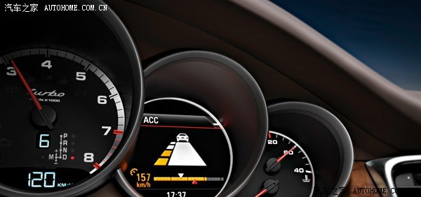 自适应巡航系统在不少车型上已经出现过,相信已经不陌生了。通过安装在车辆前进气口前的雷达感应扫描前方200米范围的车辆,若在范围内的前方车辆时速低于当前车辆定速巡航系统所设定的时速时,系统会自动降低车辆时速,保持与前车的距离。早期的定速巡航系统只会让油门介入,而保时捷的自适应巡航系统可让制动系统适当介入,可让车辆的最大加速度达到3.5m/s²。对于经常要跑长途的用户来说,这个配置还是相当实用的,即安全也可以减轻驾驶强度。不过保时捷为这套自适应巡航系统的开价不低,为34200元。