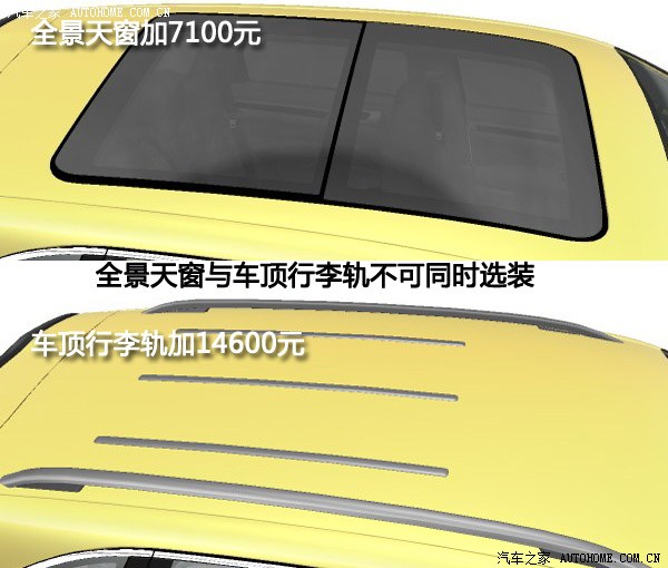 全景天窗是非常受欢迎的配置。在卡宴选装全景天窗加7100元。对于选装件都非常高昂的保时捷卡宴来说,7100元的全景天窗非常划算。但是全景天窗不能与车顶行李轨同时选装,好在卡宴体型较大,倒不一定非得用上车顶行李轨。鱼与熊掌不能兼得,消费者应该根据自己的实际情况选装其中一样。