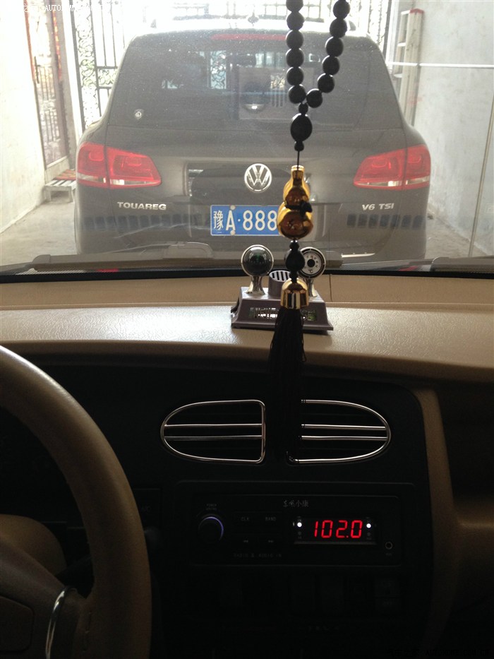 倒车镜上加了一个表 因为原车收音机上的表老是归零,因为低音炮在收音机里连着,所以一直都没换,倒车镜上的小三角是买挂件送的司机平安符。