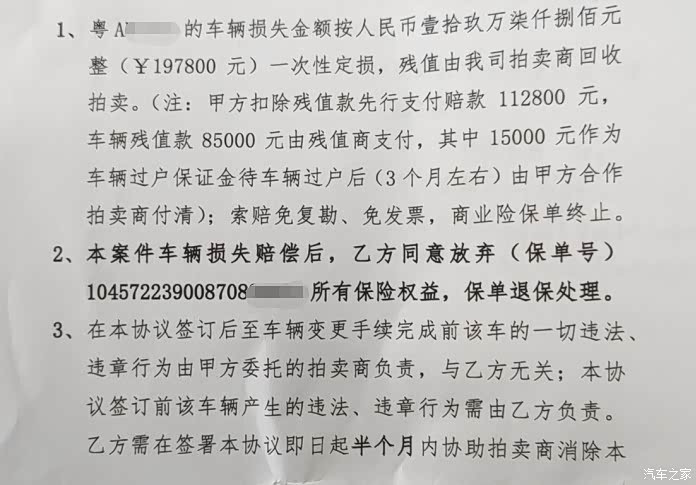 2020.10.30 与保险公司签订全损协议,与拍卖公司签订拍卖协议,理赔的事情就此完结。大概明年3月左右会重新提车