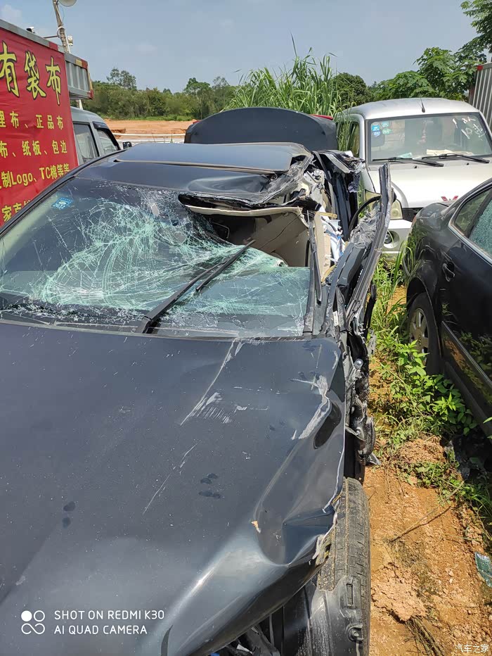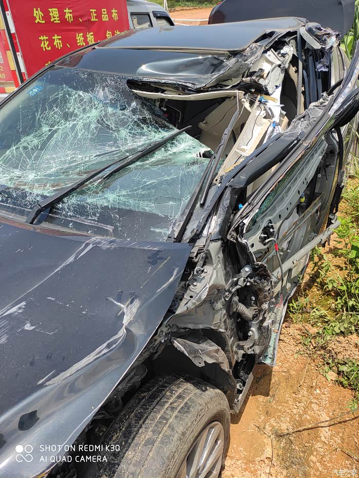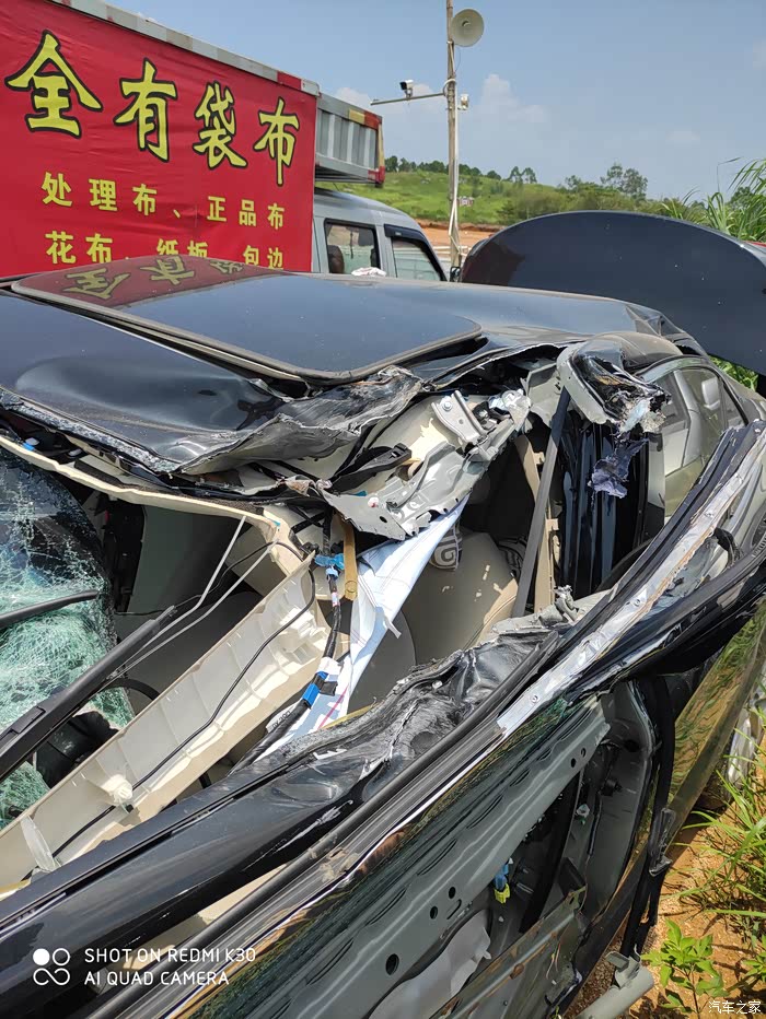 高速特大事故撞板车边角后被多车追尾,A柱断了(已签全损)