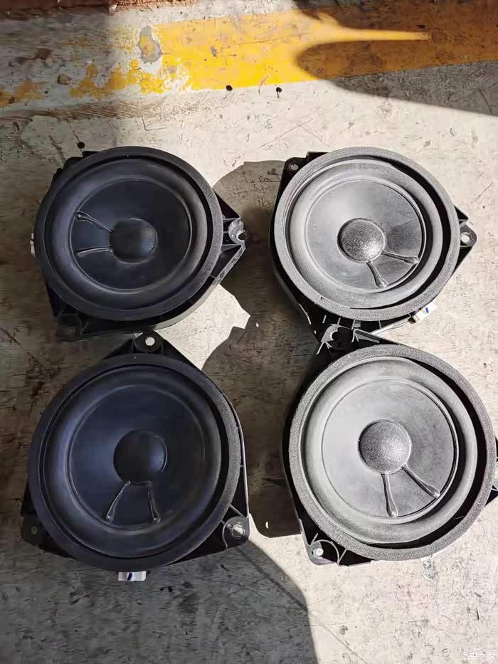 原车喇叭比较暗,EQ调的中高频都比较突出,金属盆的高音喇叭又不悦耳,门板的6.5寸喇叭开大声一点比如DJ电音,功率不够又容易失真,开小音量又生硬,抱着不花大价钱的心态,买了几个雷克萨斯ES350拆车的马克列文森喇叭,2欧40W的,原车4欧25W完全推动没有问题,刚好门板更换了线束,就顺势做隔音顺便把喇叭换了,原厂也是不厚道,门板非常薄,被其他车轻微开门碰一下就凹了,换喇叭低频增强很多,当然少不了做隔音,门内只有可怜的一小块沥青板,根本就起不到隔音作用,关门声音也是单薄,贴了止震板,顺势把门板的泡沫一起更换,换好之后低频大概是原来的3倍,中频人声温暖有力,小音量弹性十足,低频下潜够力不生硬,接着换中置喇叭,闲鱼很多所谓的拆车bose,柏林之声,哈曼卡顿,99%的都是假货!!!原厂中置是4寸的,买了一个假的bose和真的拆车破损补好的bose,都觉得不是特别好听,不是很闷就是不耐听,最后换了个3寸中音人声喇叭,子弹头设计指向性很好,但是这喇叭中高音过于突出,接个电容能当高音喇叭用了,没什么低频毕竟不是全频喇叭,然而中置开始换中低音喇叭,又感觉低频从前面出来,过于沉闷,高频不够力。