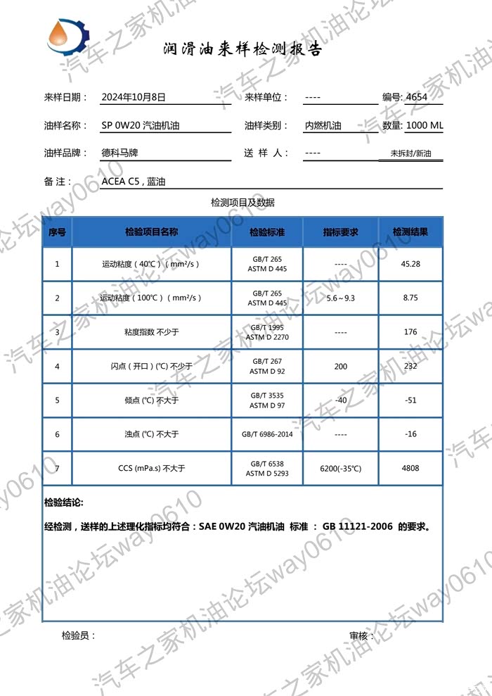 检测只对样品负责,检测为个人兴趣爱好,数据请谨慎参考,样品由论坛车友提供,一升装未开封新油。