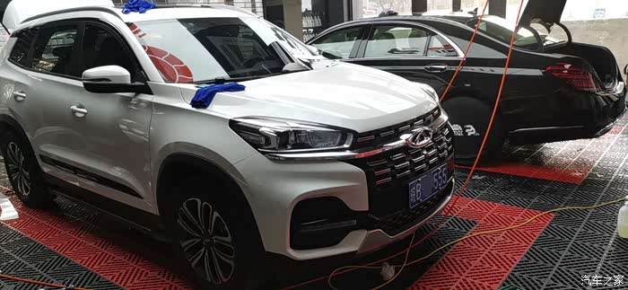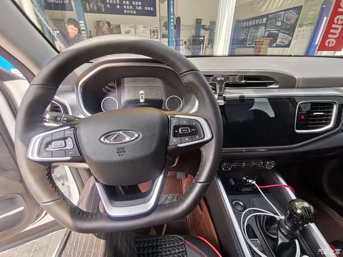 老款瑞虎8改19款平底方向盘,部分镀铬条黑化。改19款中网