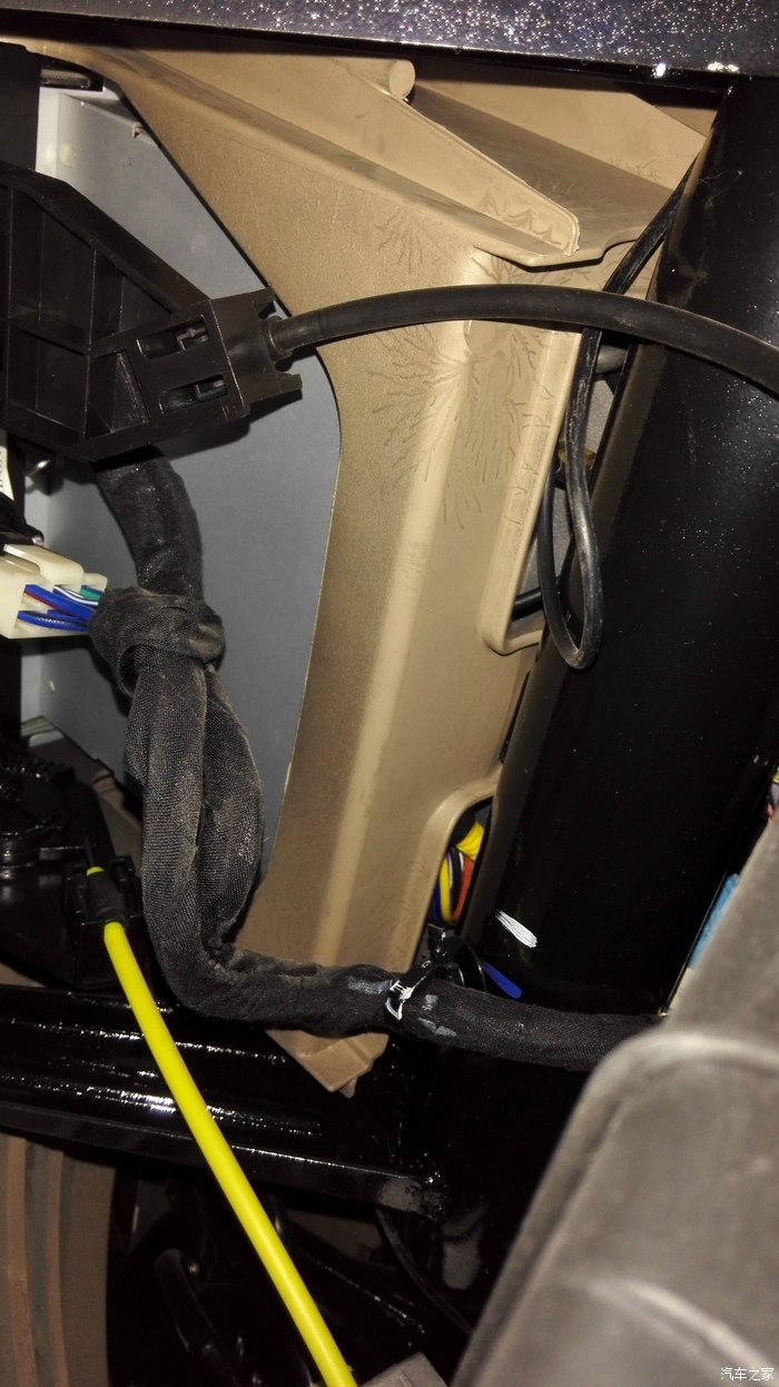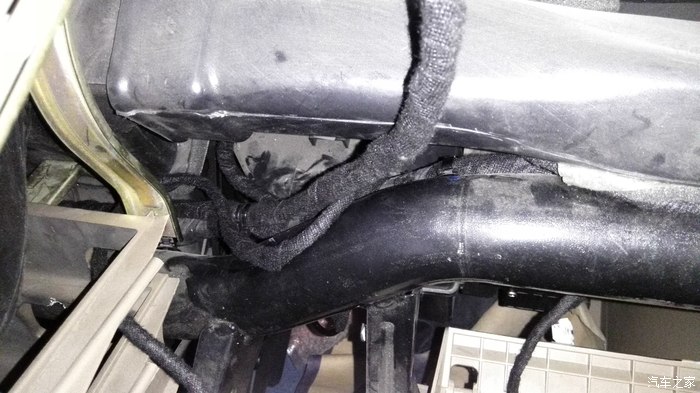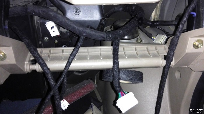 原车只要有线路,能包的都包,因为它是皮的,会发出异响,我看了厂家只用布胶布包了一部分,还有一部分没包完