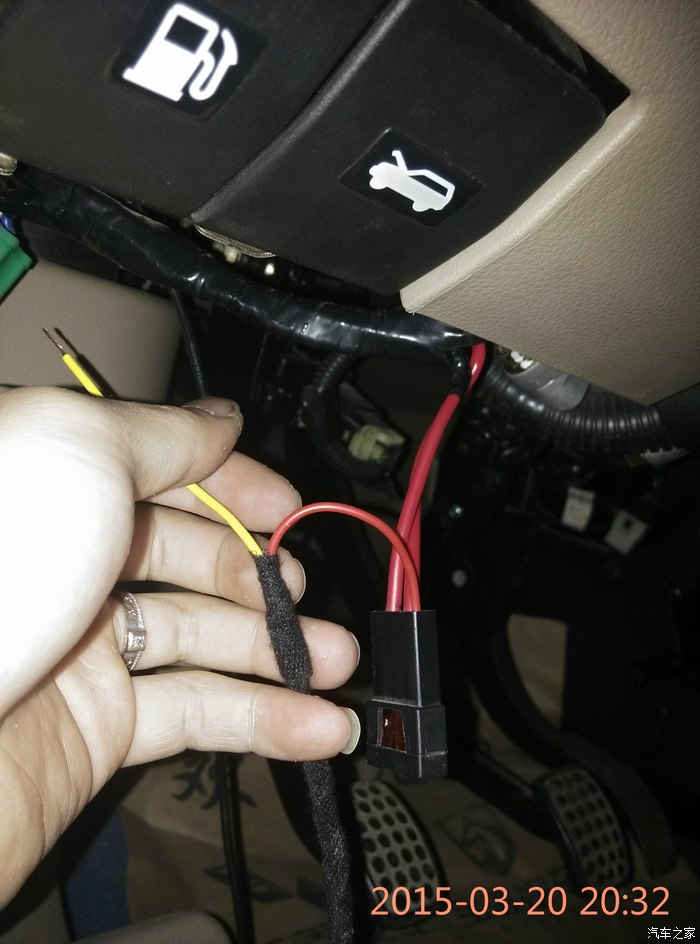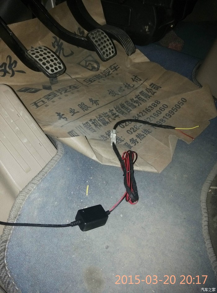 机器已经装好,开始走降压线,荣光S点烟头在挂挡位后面,所以没用他,直接从电门锁那里取个二次开机的ACC,也就是ON线给降压线供电,这样就和点烟器一样的效果,我没选择24小时工作,停车监控我怕太费电