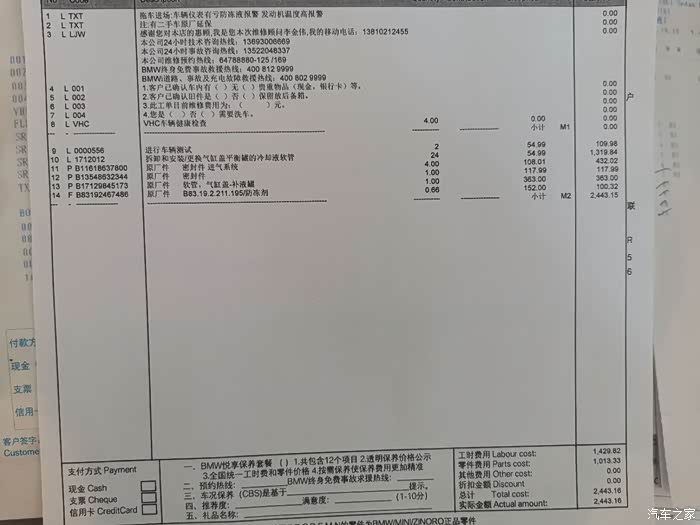这是别人在4s更换的工单,补了一个防冻液,花了2400多,我补3个要是去的话得2700多