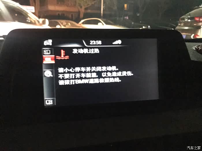 第二次提醒的时候刚好到小区门口了,停车回家睡觉!今天早上检查,果然是中招了,防冻液回水管爆了!