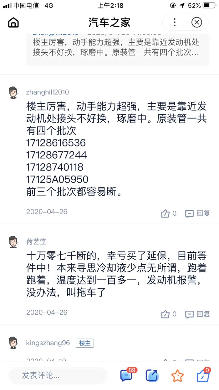 回水管430?3瓶原厂防冻液240,合计670搞定,一共用时两个多小时,真心不好换!明天早上凉车再检查下防冻液水位就ok了