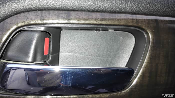 1.用小撬棒或平口起子撬开车门手柄处的塑料片,里面有两颗十字口螺丝。