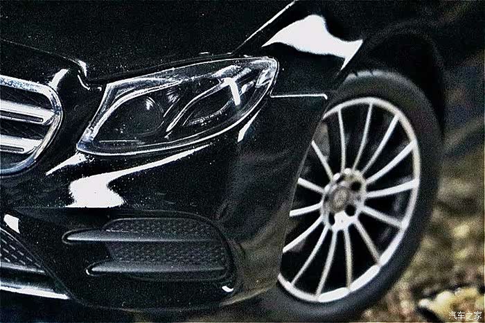 E级整体的车头让人看上去有有着十足的安全感,但是灯罩的毛边瑕疵略有一些多了。黑色的模型的确比较容易落灰,不过模型的整体漆面工艺还是不错的。
