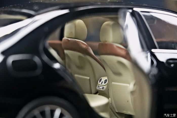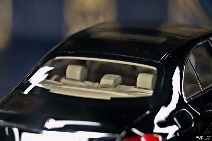 后排乘客采用了三个头枕的设计,照顾到了后排乘客整体的舒适安全,米色内饰的豪华车型的确让人感到很温馨,但这台模型整体的玻璃工艺质感一般。