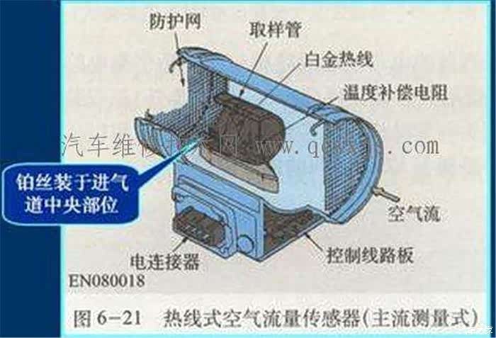 我放一张热线式空气流量计的原理图,为有兴趣的朋友学习之用。具体的工作原理上,有些复杂,如果有兴趣的朋友可以私信我,我会讲解具体怎么检测和判断流量计的好坏的。