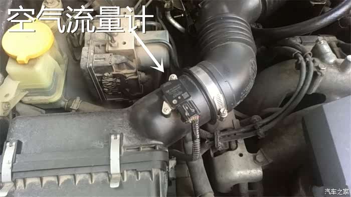 这个空气流量计采用了热线式的设计,原理就是利用惠世顿电桥串入两个热敏电阻。发动机在进气的时候,会利用空气带走这个热线电阻旁边的热空气,导致周围温度的变化。当热线的温度变化时,会导致热线的电阻阻值发生变化。然后导致整个惠世顿电桥发生变化,进而发动机电脑通过电阻阻值的变化来检测发动机的进入的空气量。用万用表进行测试,发现空气流量计的电压符合范围之内,并没有损坏。