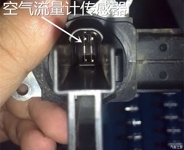 这就是空气流量计的位置了,一共有五根线,分别是空气流量计的信号线,火线,搭铁线。进气温度的信号线,和搭铁线。由此可以看出,这个空气流量计整合了进气温度传感器和空气流量计用于对进入发动机的空气进行计量。主控制是空气流量计,辅助控制是进气温度传感器。通过进入进气道的空气和温度进而控制发动机的喷油量,也就是混合气的浓度。