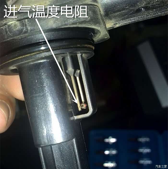 那么作为辅助调节喷油量的进气温度传感器呢?原理比空气流量计还要简单,就是串入一个热敏电阻来对进气温度进行测量。但是它无法进行自我调节,也就是说,电路原理上比空气流量计要简单的多。不具备恒温测试,直接反应了当前的进气温度。经过万用表的测量,输出电压也在合理的范围之内,说明传感器并没有损坏。