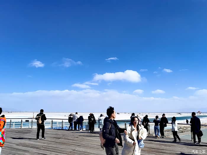茶卡盐湖还因盛产大青盐驰名,成为中国首家绿色食用盐生产基地。近年来以其生产、旅游两相宜而在国际国内旅游界及青藏高原风光游中享有较高美誉,游客数量逐年增长,被国家旅游地理杂志评为“人一生要去的55个地方”之一,成为大美青海的又一张靓丽金名片。我们买了门票进去,这里的售票员还给我们每人一袋青海茶卡盐,所以小伙伴们以后开车自驾青藏线不妨来茶卡盐湖打打卡还是蛮好的。