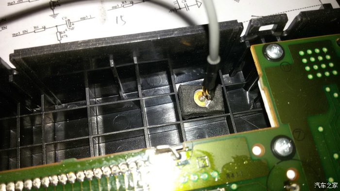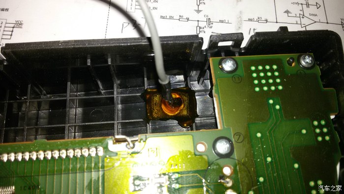 重新走AUX输入的线路,注意这样走线要磨背光条,图上是已经磨好了的,不磨是放不下线的