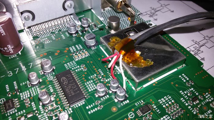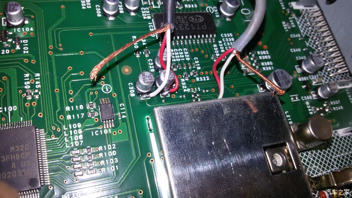 原车主板上要焊的三条线(电源,收音通道和输入线),改动量较小
