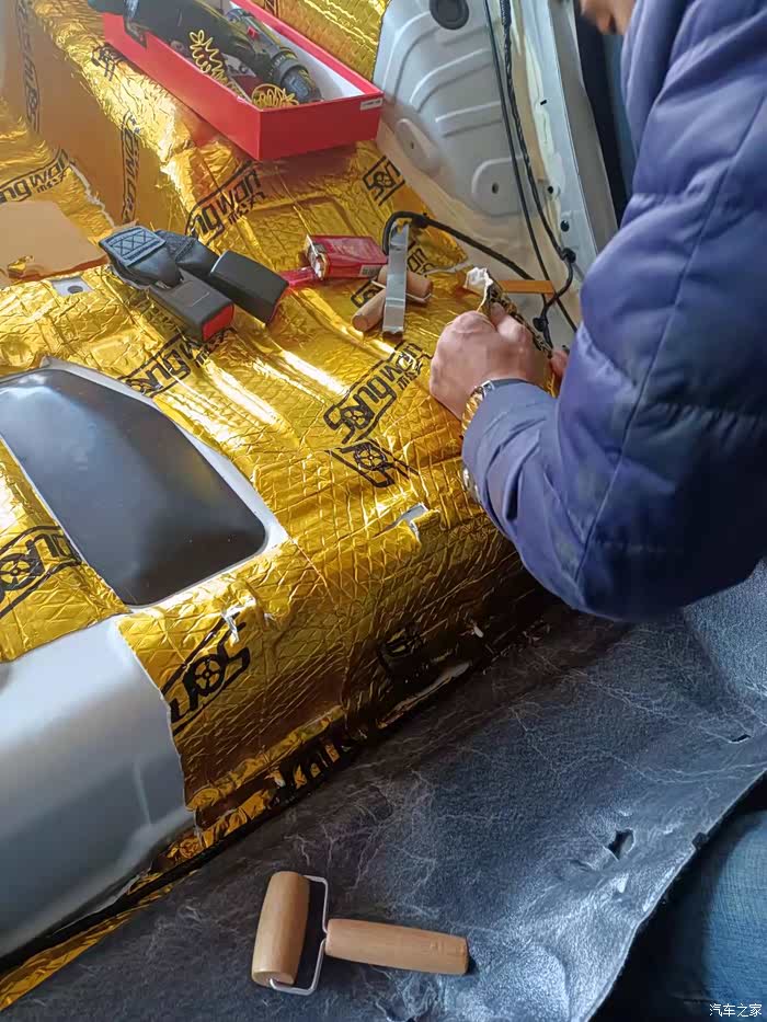 《隔音保温》自己在论坛看到铁子们做的保温止振我也感觉很有必要做一做。买了0.5×3.2米的一共四块,车底两块,隔音棉1×10米的一块用的不多,主要是车顶隔音保温,因为论坛里说是下雨声音很大,顺便加装了阅读灯,led的很亮,每天晚上下车或去车里找东西一抹黑,啥也看不见,现在好了~~~~亮堂。