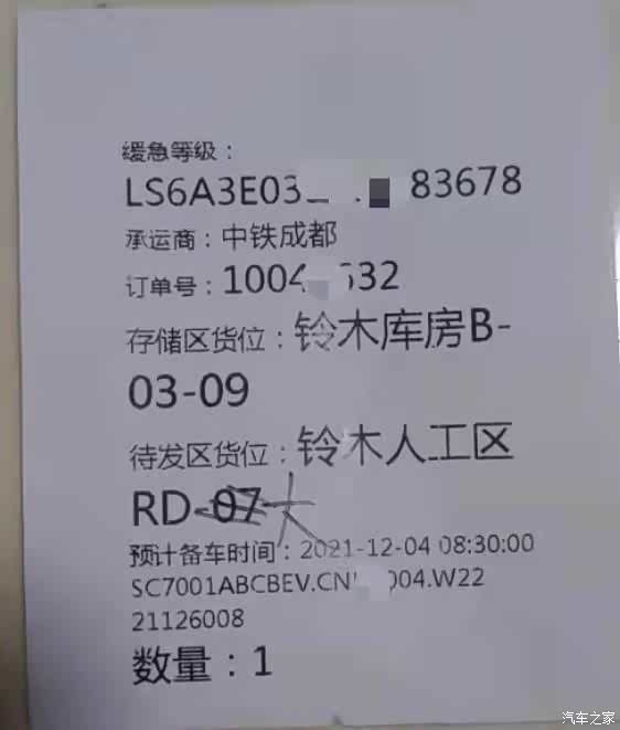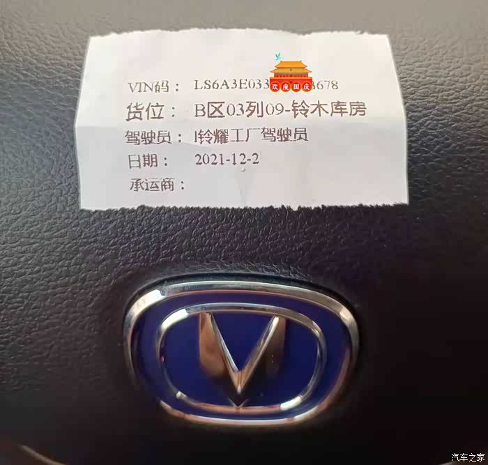 首先我证明我不是水军,这是在车内发现的带有大架号的小纸条,生期和车上的铭牌能投起来,都是2021.12.02.