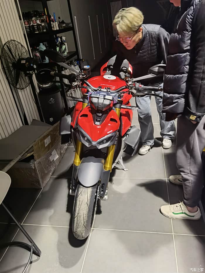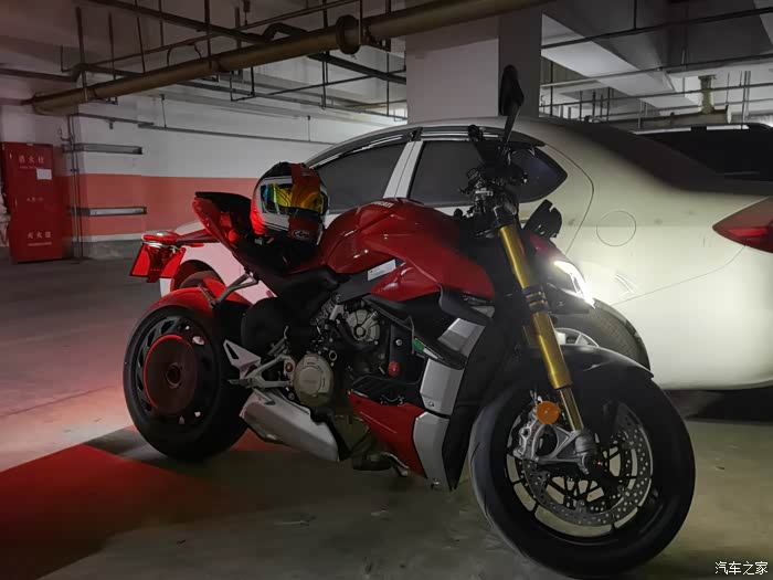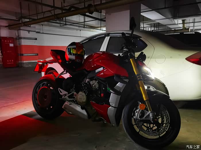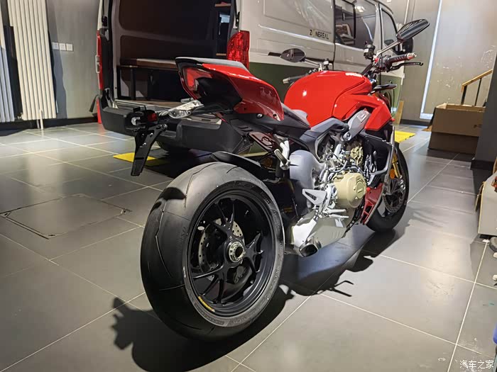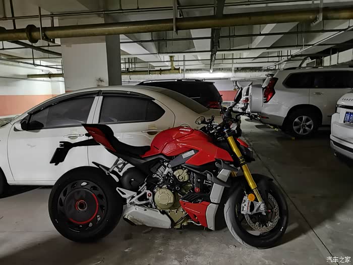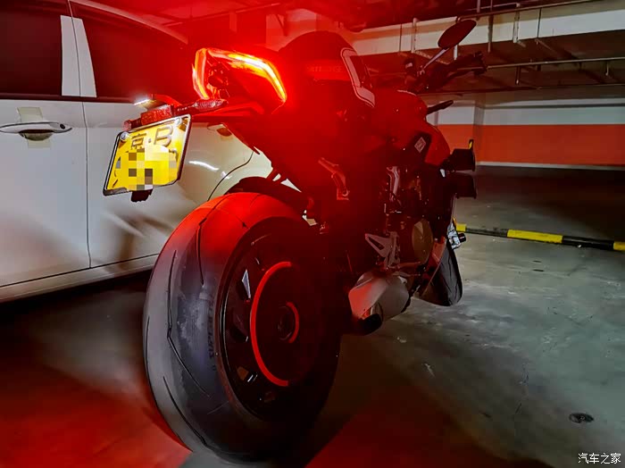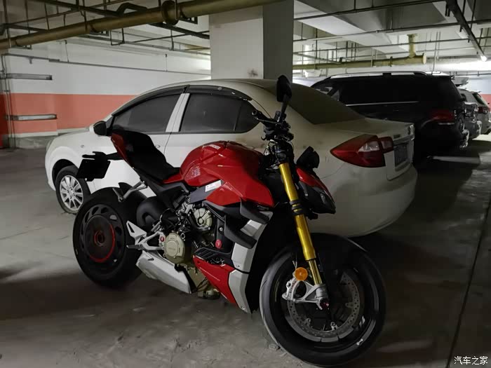 直到21年,杜卡迪出了街霸V4,当时就对这车欲罢不能,我对仿赛一直无感,一直还是觉得骑着舒适和灵活很重要,所以对这种保持仿赛动力,又兼容了舒适和实用的车非常喜欢,尤其一点动力也没有阉割,纯粹的暴躁非常痴迷,但是看到价格也是很惊讶的,但是去年听说要涨价后,在媳妇的支持下,下决心订购了一台,今年开春终于提车圆梦了。